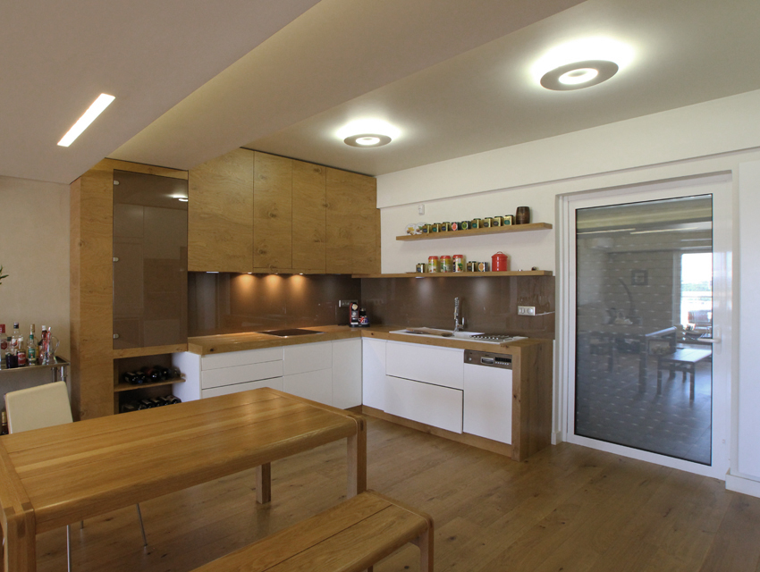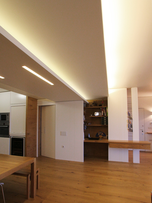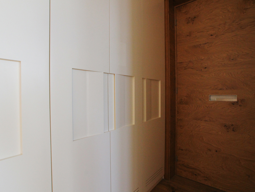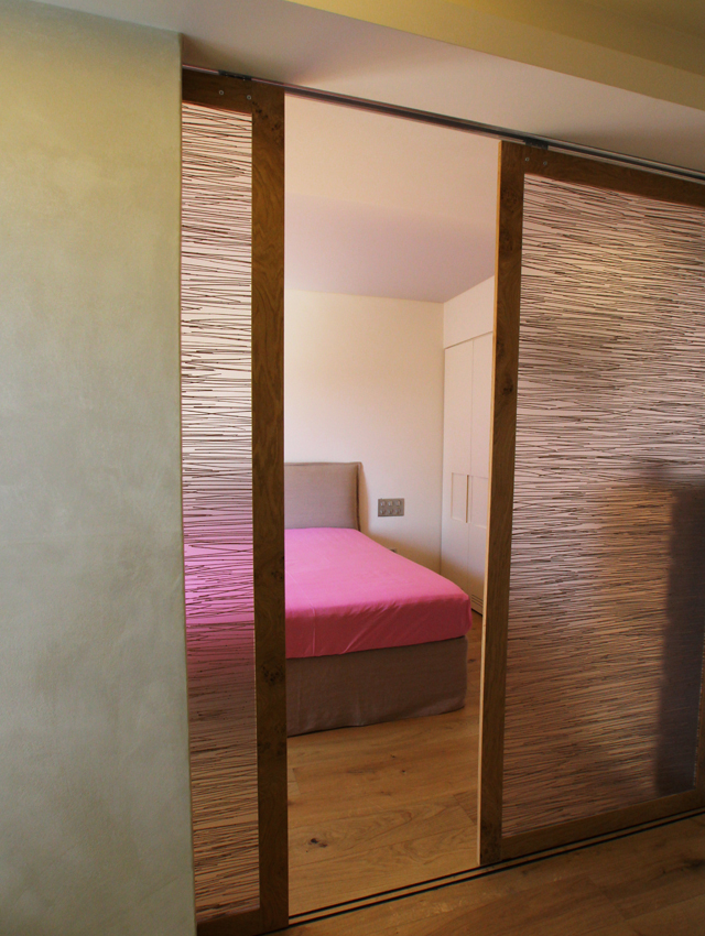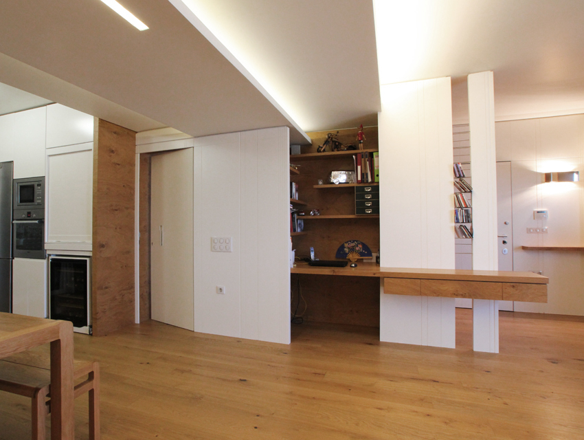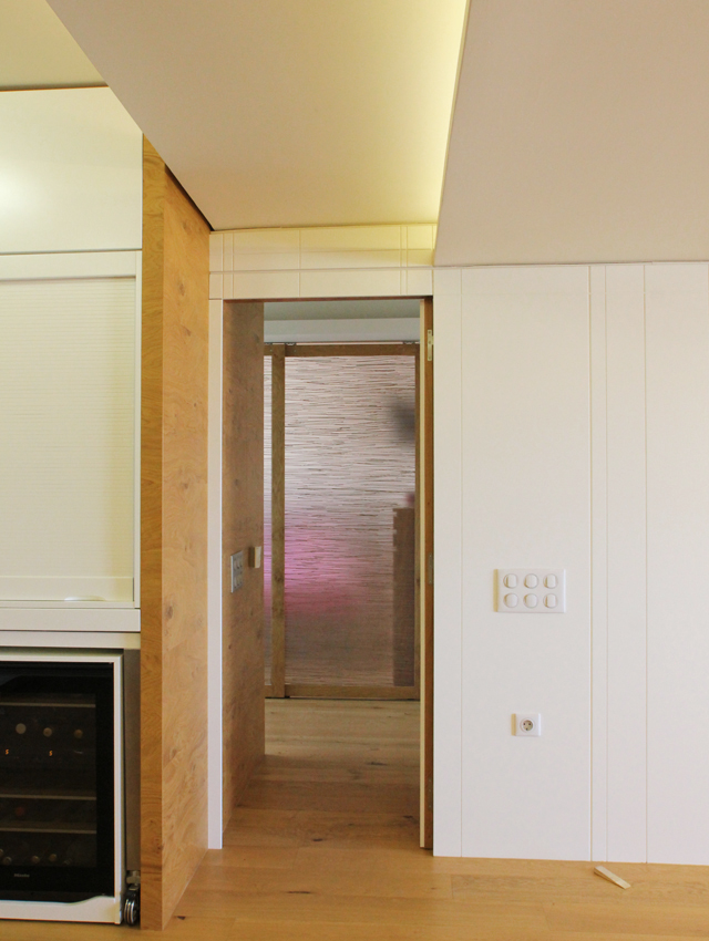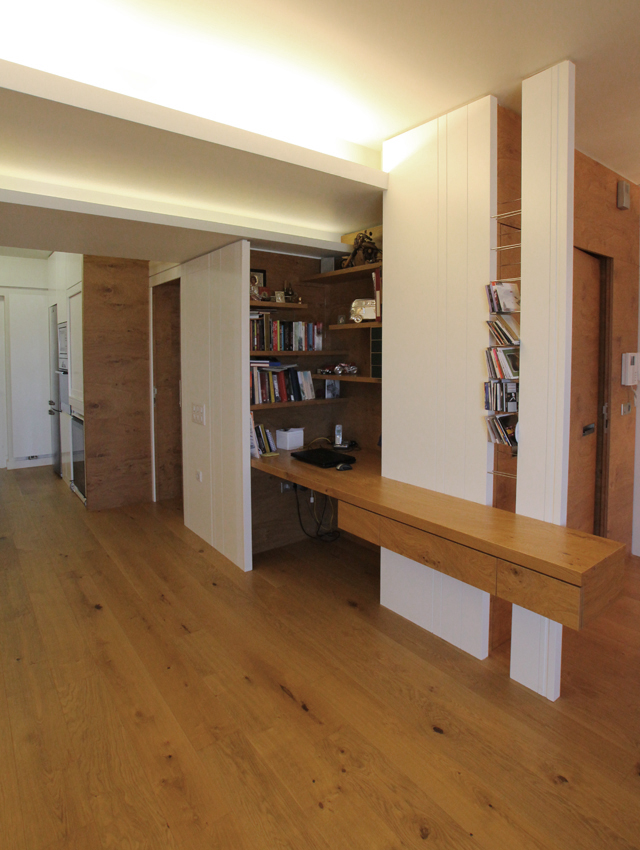 This undertaking entailed the interior design of a three bd apartment in a newly built block of flats. The client’s wish was the conversion of a three bd flat into a 2 bd one which included an en-suite master bathroom. This was based on the major concern of allocating more space to the living areas. In the context of this endeavour, journeys to Thailand became the guiding inspiration in terms of the use of materials and the general atmosphere that was to be evoked by the flat. Moving within this concept, wide rough oak planks were the primary material used for the floor and furniture fittings. The emerging need to counteract the intense effect of the wood led to the use of white semi-gloss surfaces for the rest of the fittings, positioned in vertical direction to the wooden ones. Furthermore, use was made of an ecological special cement finish for the walls and the main bathroom floor. In a bringing together of aesthetics and functionality, two sliding panels, made of bamboo sticks and resin, were used to separate the bedroom from the en-suite bathroom. Additionally, all doors were designed with hidden hinges, creating the visual effect of them being part of the wall coverings. The colour scheme of the space follows the subtle tones of linen and sand. Finally, the overall design led to the creation of an airy, bright, cosy space, which is tinted with natural colors and textures.