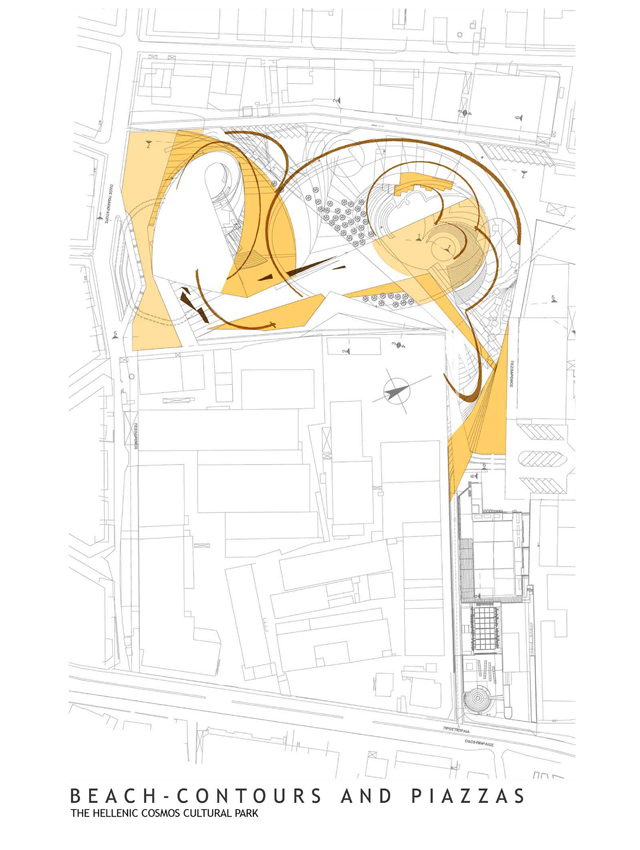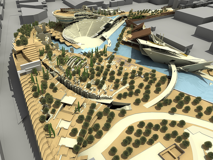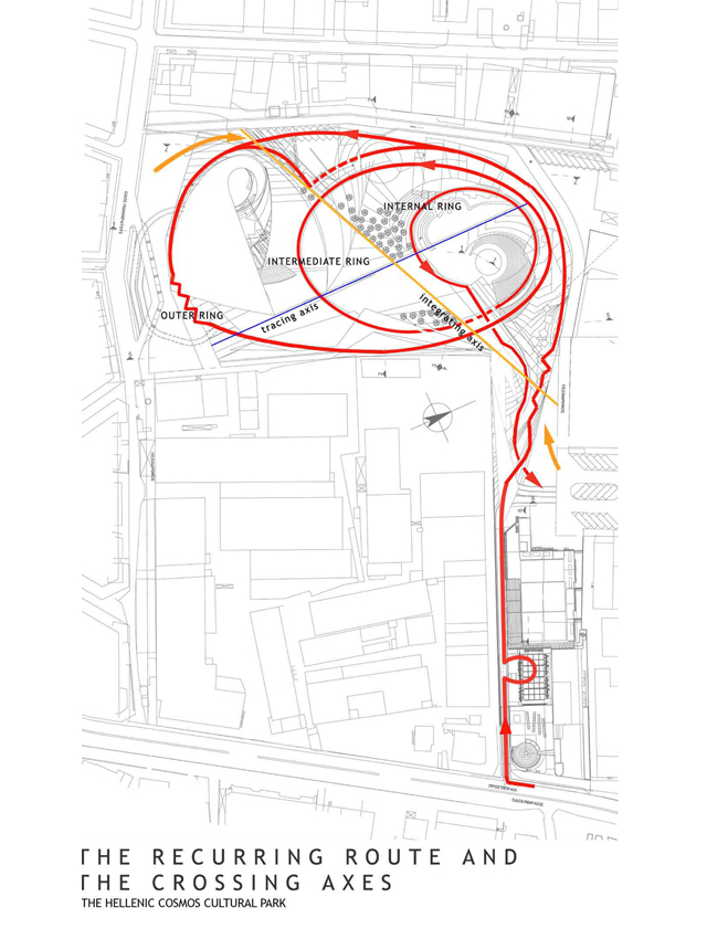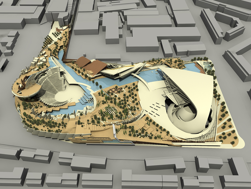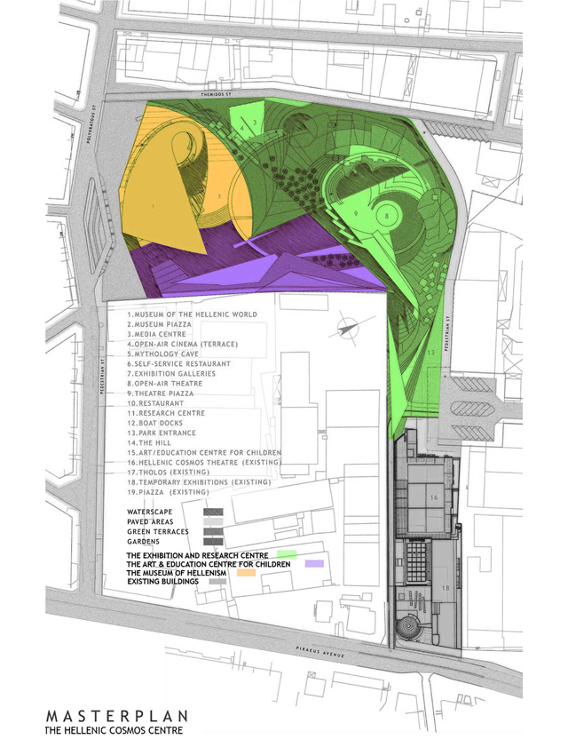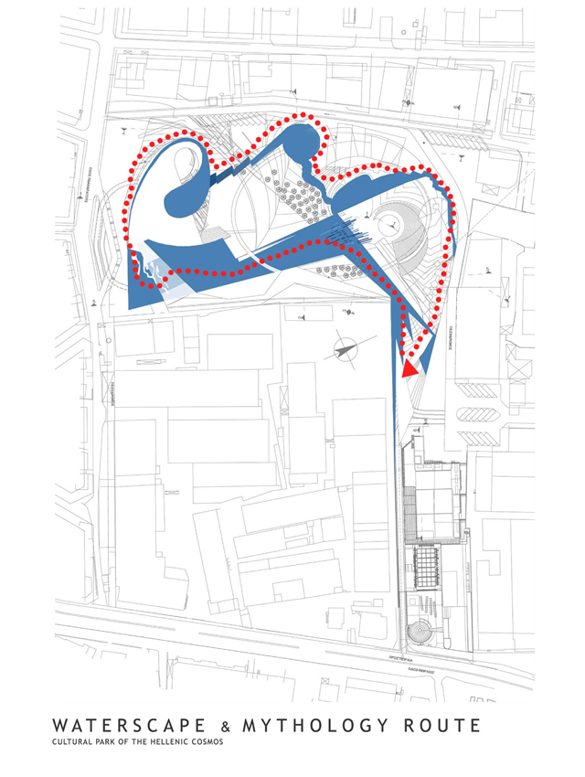 The complexes are aimed at cultural and educational orientation by means of communicational and interactive presentations and events. As such, the designed buildings are not static objects existing merely to accommodate specific functional programs, but living organisms that participate in and promote the highly set quality targets of the complex. The general design concept is based on the blending of boundaries between landscape and building, as well as between local and urban scales. The concept subverts static idealizations and vacant symbolism as regards history. Instead, it approaches history and myth as vivid, inspirational elements, embodied in everyday existence: elements powerful enough to give rise to multifarious spatial and urban contextualizations. The guiding design principle arises from the organic relationship of Greek history and mythology with Greece’s living, breathing landscapes. Within this project, this principle extends to encompass instrumental and educational features.