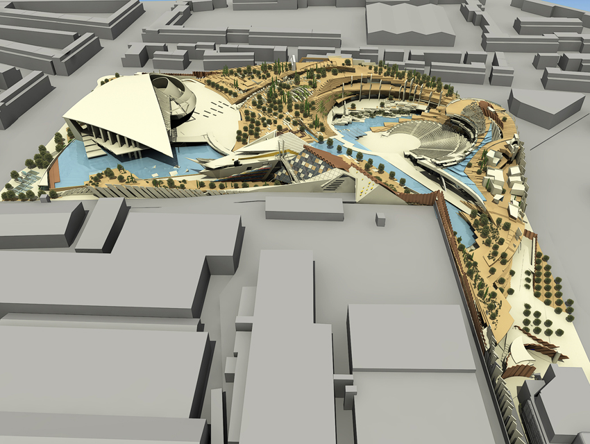 The project involves the conversion of a 60.000m2, neglected and dilapidated ex-industrial area, on Peireos Av. in Athens, into a cultural centre inspired by Greek history, mythology and landscape. The office came up with proposals regarding the general outline for the site, as well as for the design of the master-plan, the landscape and three major building complexes. The said building complexes are: