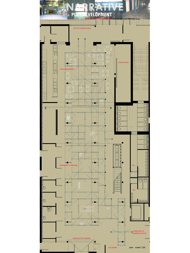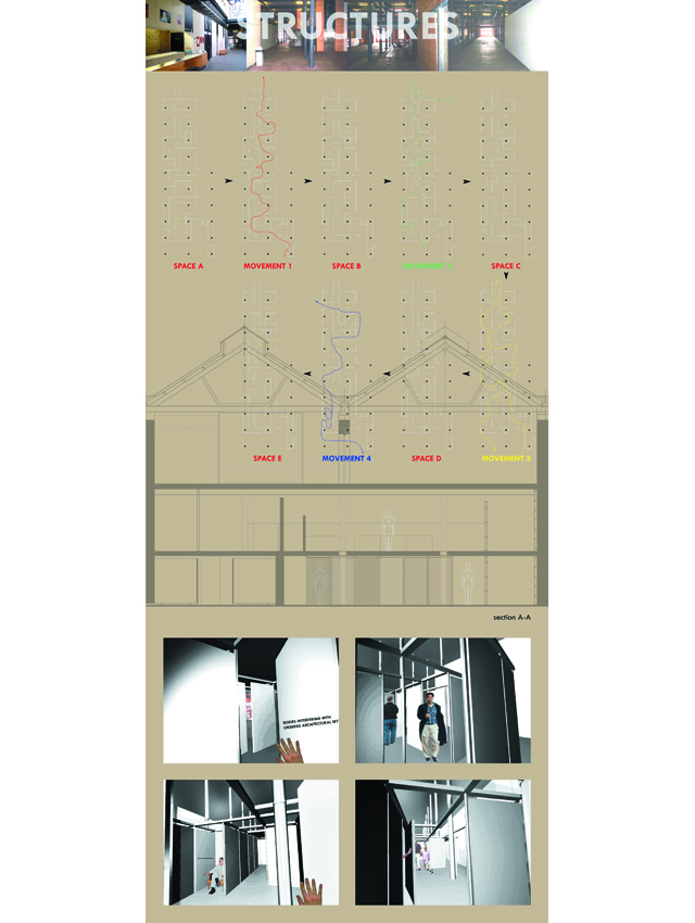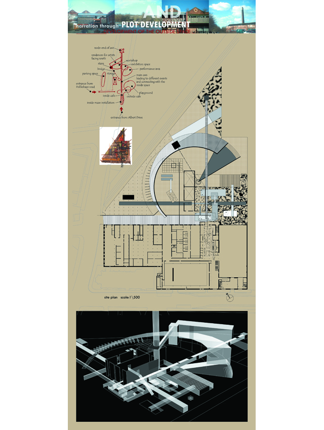 Architectural narrative through plot development is about movement, process and sequence. About superimposed layers, conflictual programs, heterogeneity, agents, goals, means, interactions, circumstances and unexpected results. “Narrative structures have the status of spatial syntaxes. By means of a whole panoply of codes, ordered ways of proceeding and constraints they regulate changes in space or moves from one place to another”, each space occupied by a memory, a dream, a function, or activity. In other words, 3D narration is a travel a spatial practice which occurs when space, event and movement intersect with one another and blend into an intelligible whole.