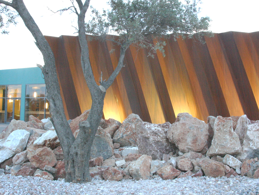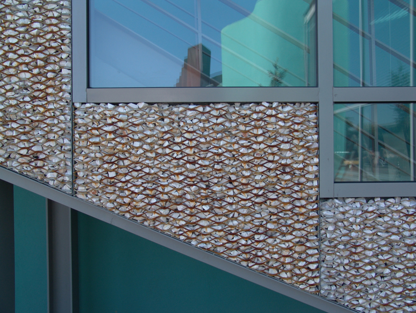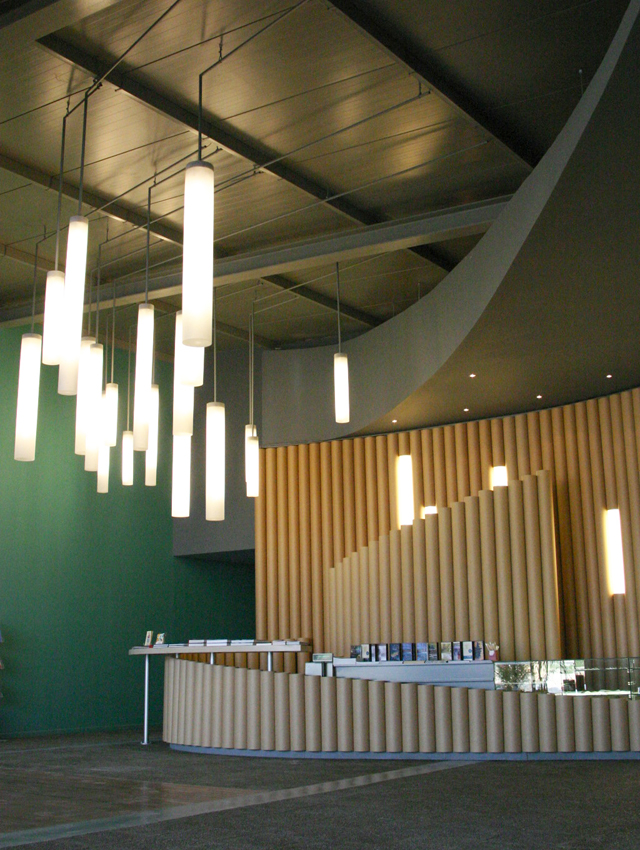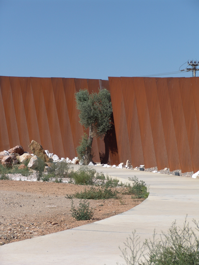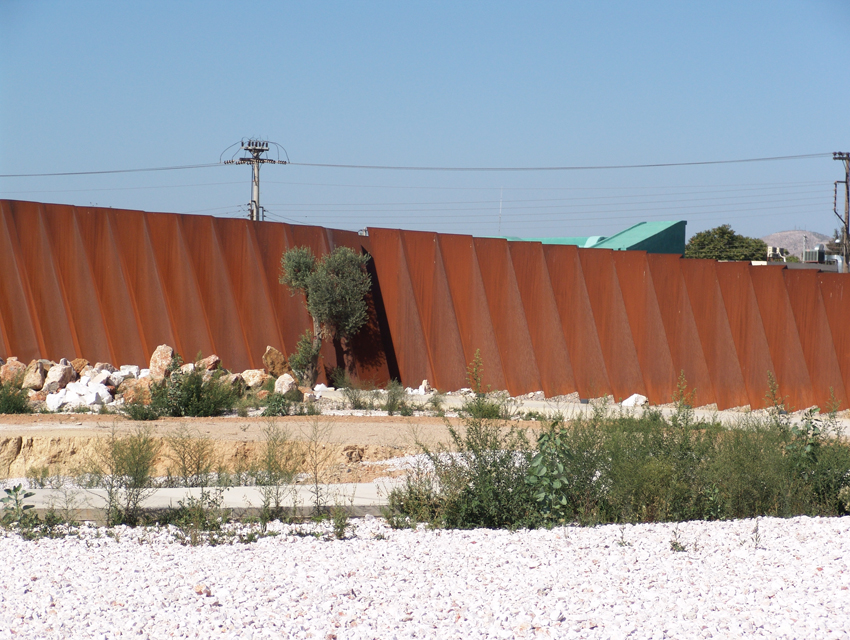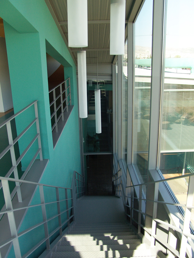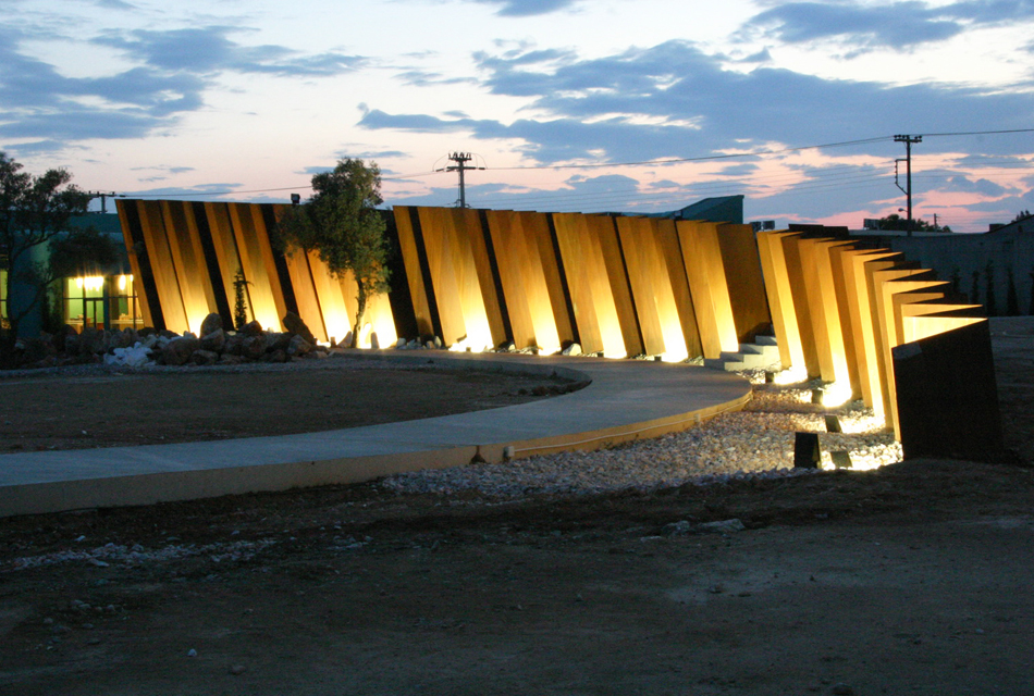 his project involved a requirement, by the Hellenic Cosmos Institution, to transform an old, deteriorated industrial building, located on an extensive industrial site, into an exhibition centre. The latter was to take on the role of a cultural centre that would consist of a variety of indoor and outdoor spaces. “Building 7” was the first trial step towards this realization: a realization that embodied the possibility of the building’s complete or partial future integration with the wider, land re-development program. The new architectural intervention is not aimed at the revelation of any architectural industrial character. Therefore, the building was approached as a coalition of structures which would engage new materials and forms, in an attempt towards a complete reformation. At the same time, the selected forms and materials would operate simultaneously on micro and macro-scale levels, as they were required to both withstand the passage of time and inspire future functions and new structures. Through the special use of raw, recycled materials, the building acquires a character which is both “ephemeral” and ”permanent”, and, simultaneously, becomes itself, an art object. Materials were chosen based on their inherent properties. Specifically, massive rocks, rusty iron sheets, blocks of stone enclosed in pre-cast wire, paper tubes, paving slabs, wood, and so forth, are manipulated into sculptural objects. These sculptural objects are in some parts juxtaposed with the existing shell, and, in others, form a formal continuity with it. In yet another architectural erosion of boundaries, special emphasis has been given to the relationship between interior and exterior space, through the insertion of external forms and materials into the internal space. Finally, the design axis, the curves and the visual relationships of the building are derived from a wider masterplan design, which has been applied to the whole site.