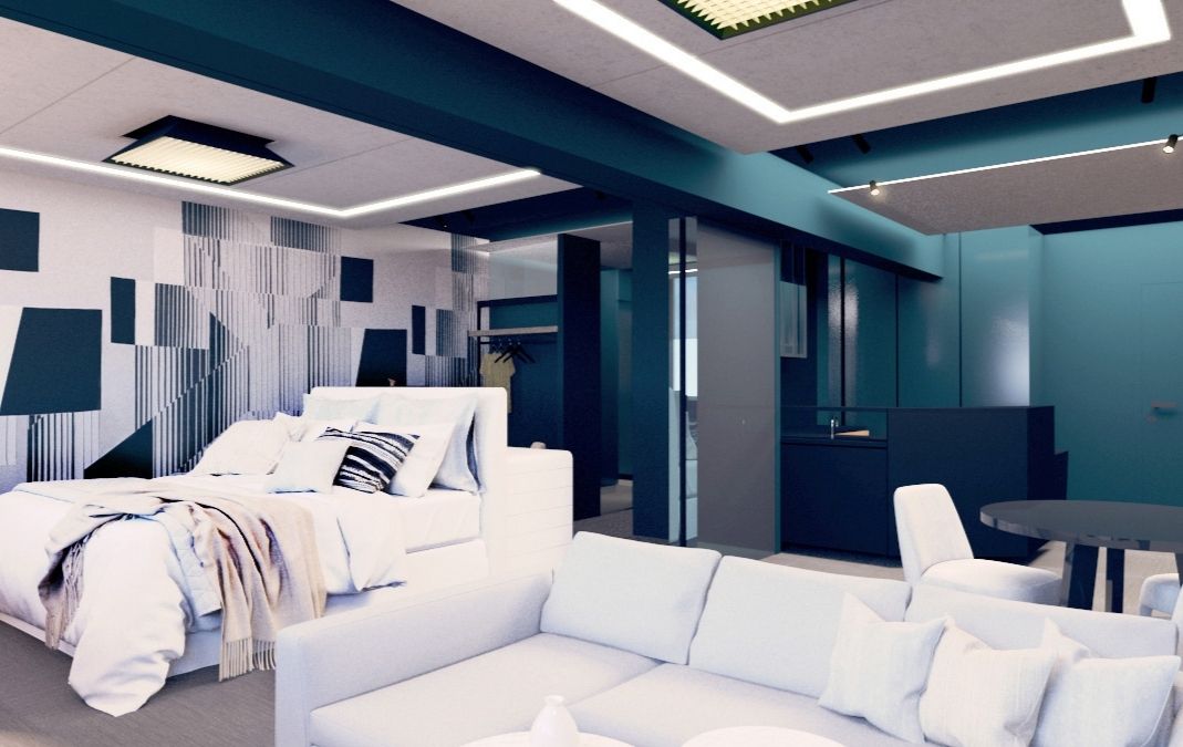 The space is to be initially used as an extension to an existing office space including two meeting rooms that can also be converted into a larger single one. In addition there is an extra requirement for the space to be converted into an apartment with the least possible changes taking place.