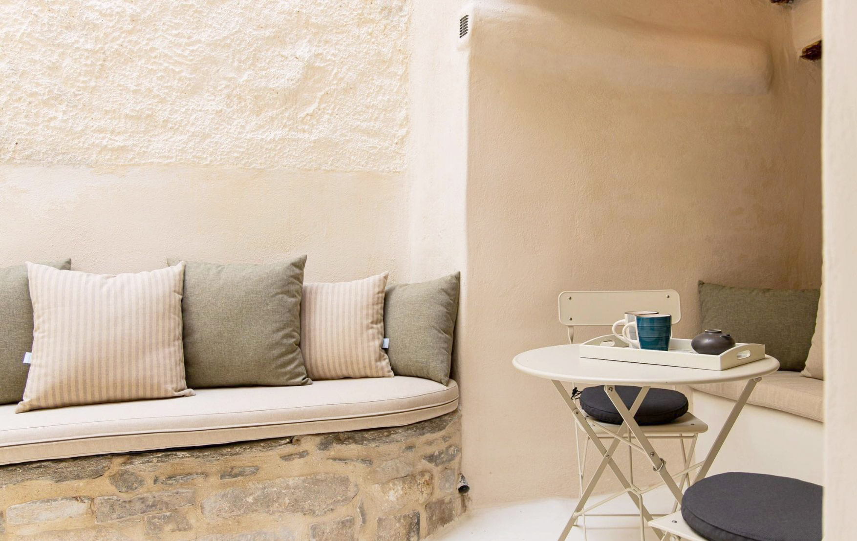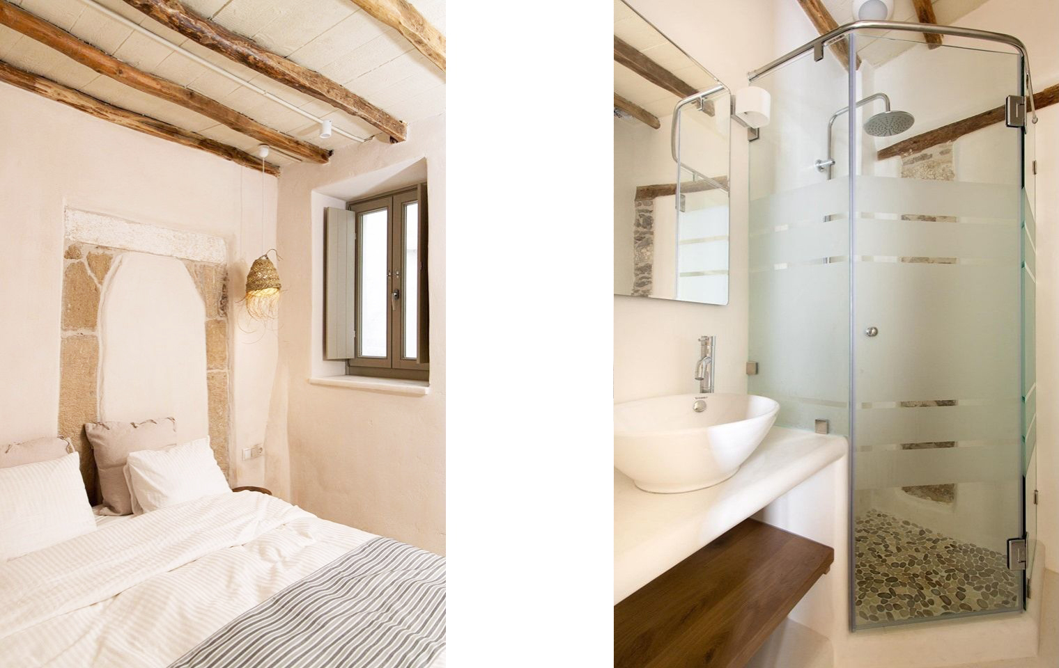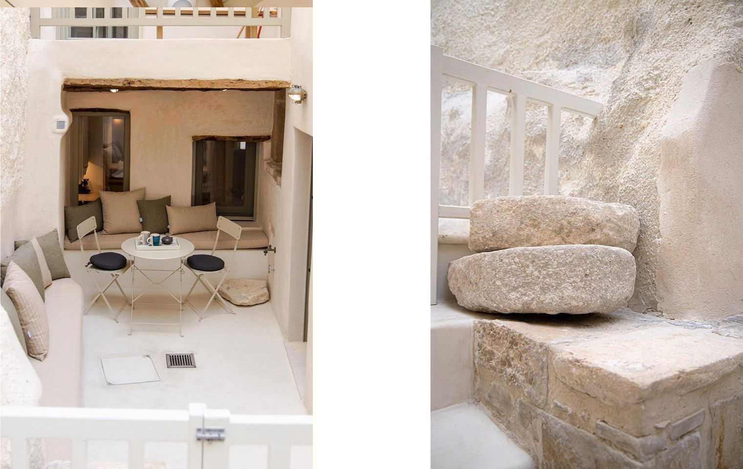 Our attempt was to maintain as well as highlight the original venetian style elements which were revealed during construction in both apartments. We also succeeded in allowing views towards the sea and in creating cozy and aesthetically pleasing environments. Our primary goal was to design a relaxing and inspiring holiday retreat with a sense of elder times.