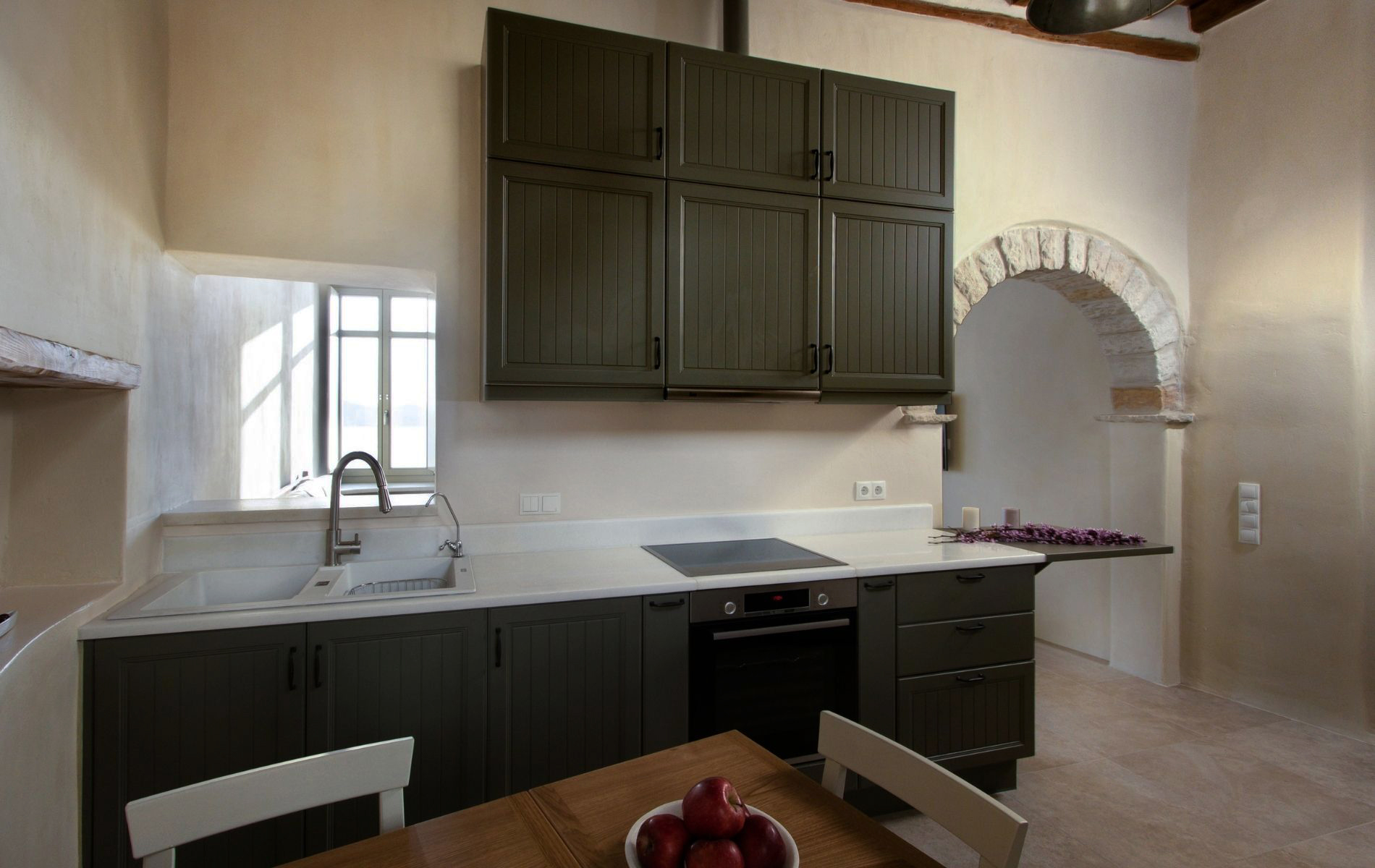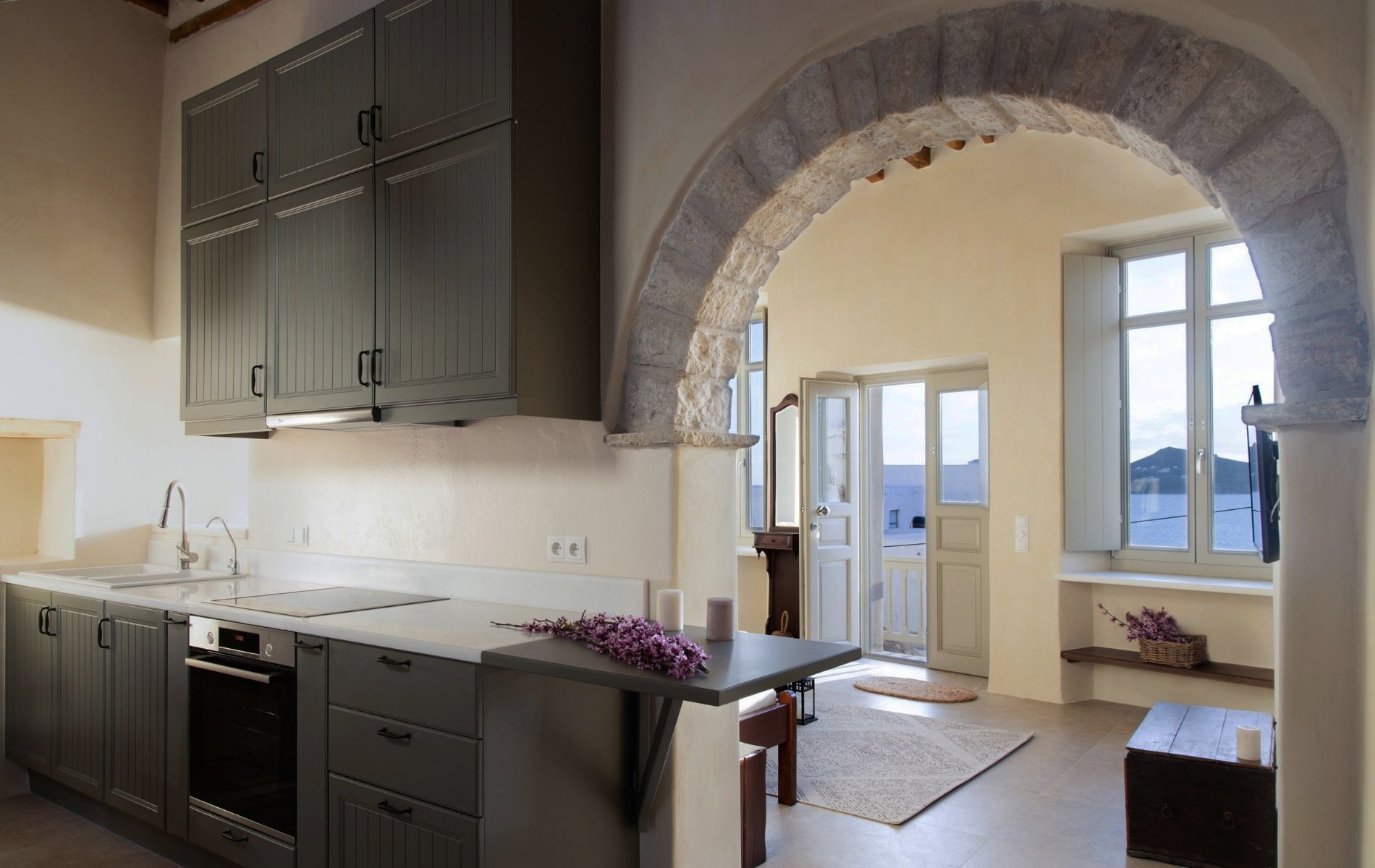 Since both houses will be used by the owners but they will also be offered as rental accommodation during the tourist season, interior design had to be aesthetically appealing as well as simple and practical.